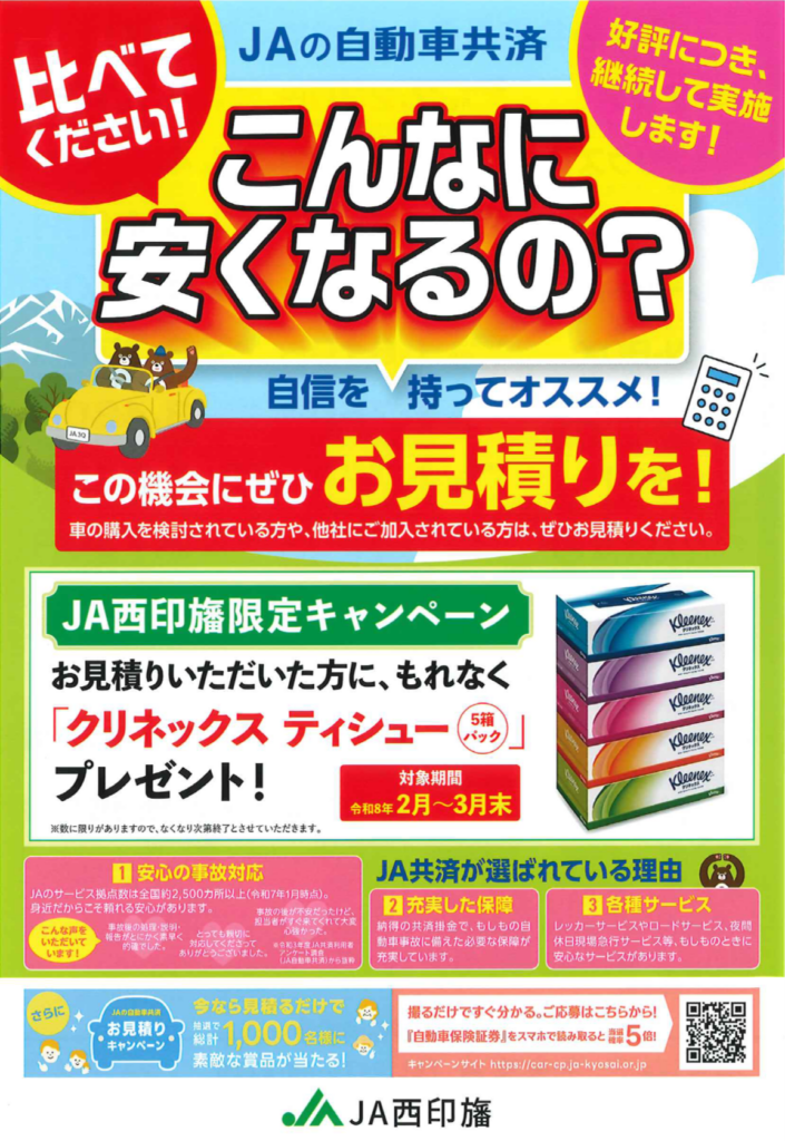 JAの自動車共済 自信をもっておススメ!(対象期間:令和8年2月~3月末)